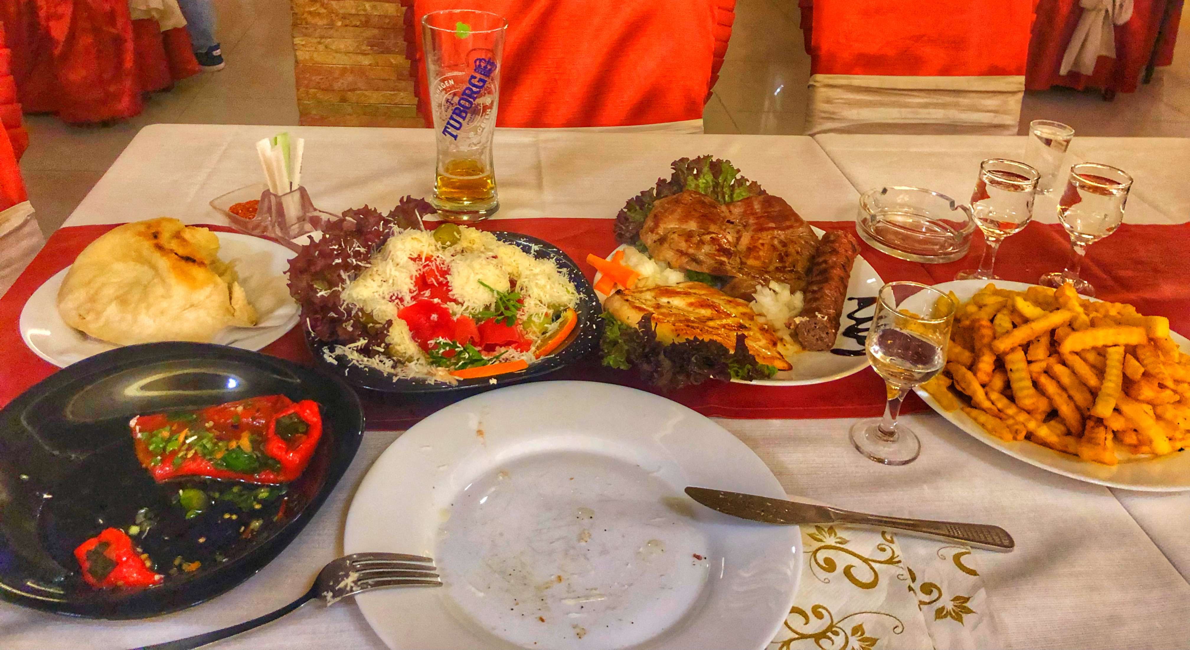 Boban the Hotel manager greets me, a very openhearted, friendly guy. He joins me for my after-ride beer and we discuss geography, politics and sports. I get a nice, spotlessly clean room, a gigantic and delicious dinner (although I had ordered a snack), plenty of Slibowitz and he later shows me around town, while delivering some late-night food. It being Orthodox Easter, tomorrow is a day off. Boban asks me if I’d like to join a family get-together with some good Serbian fish up in the hills the next day. It’s his 4 years old sons birthday and his parents, siblings, cousins and the family from his wife’s side are meeting up for some lunch. I am very honored and immediately decide to grasp the opportunity and postpone my departure by a day!