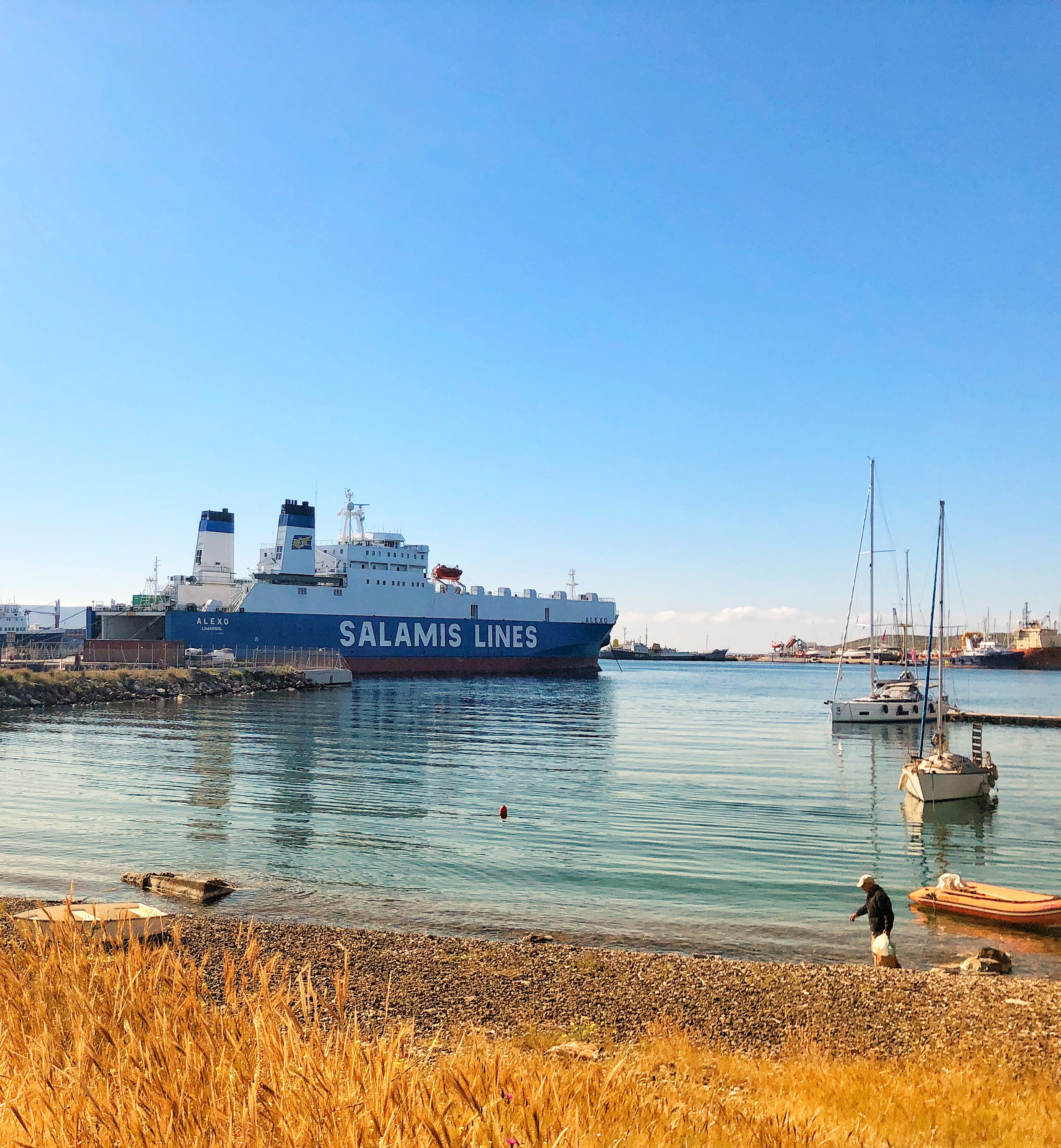 The paper work at the port is surprisingly easy. Some walking, getting some stamps and confirmations and some waiting. At least good four-legged company joins me for the waiting. It’s a strange feeling leaving the Husky back at the port incl. keys, papers and luggage. I hope to see her soon in Israel.
