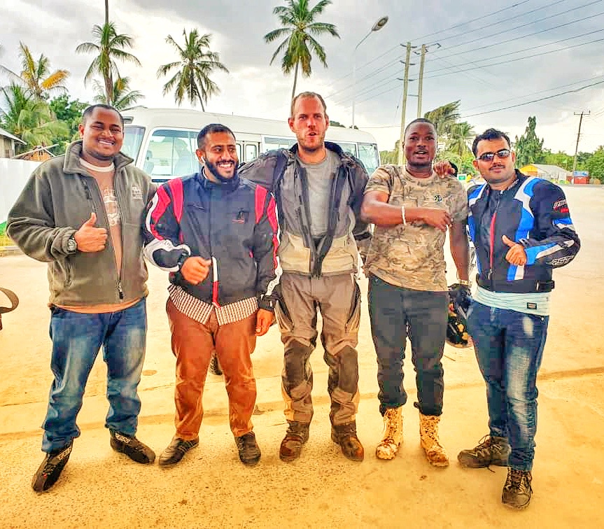 My contact in Dar Es Salaam is Hussein. Hussein has received the tires & is awaiting my arrival. We agree to meet-up in Bagamoyo and ride into Dar Es Salaam (Dar) together. In Bagamoyo I’m greeted by a group of 4 bikers & we ride into Dar as a group. Though widely famous for its hectic traffic & congestion, on a motorcycle this is not too big of an issue. Left, right & in-between cars. Wherever there is room, a motorcycle goes. I’ve easily adapted to this custom & we fly into town.