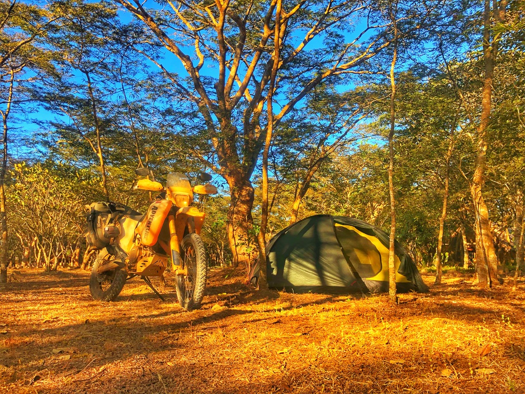 On my way to the reception on footpaths through a jungle like setting, I cross paths with a gent sitting on a GS 1200. First thinking that Steven is an Overlander himself, I find out that he is the owner of Fish Eagle Point. It being advisable to keep a certain distance from the group of 16-18 year-old students, I am allowed to pitch my tent on a patch next to a chicken shack. This place is beautiful, a true little paradise. No other lodges around for several km, just natural beauty.