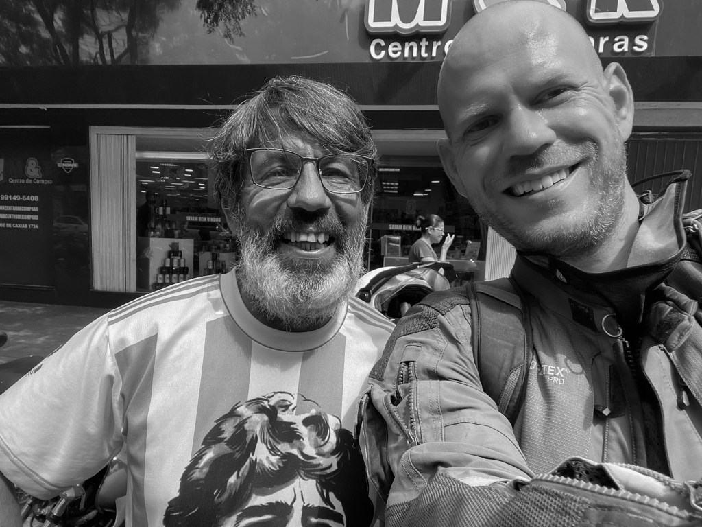I need a SIM card for Brazil. I chat with Adão in front of the telecommunications shop in Uruguaiana. I now enter the shop. For the purchase of many things a CPF (Tax Registration Number) is required in Brazil. It so happens that I’m sent back out of the shop due to not having a CPF. Adão asks me whats wrong. He thinks this is unacceptable. We head back into the shop, register a SIM card on his name & chat during the waiting time. I’m now Sr. Adão Oliviera da Silva.