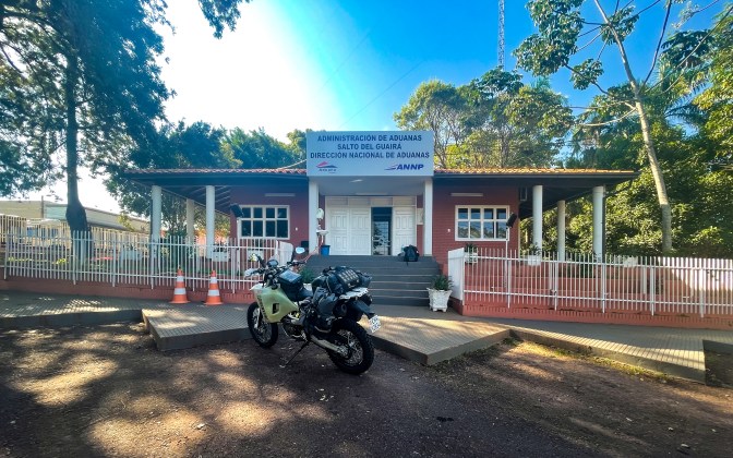 We cross the stretch in 2d & settle for the night in Mundo Novo, 9km from the border. It’s Saturday, the last day the Husky is permitted to be in Brazil. We will cross over to Paraguay today. No border police working on the Brazilian side of the border. We ride 12km back to Guaira & find the local border police station to get the exit stamp in my passport. Receita Federal (customs) is shut too. I find one gentleman working on the entry side of the border who gives us the exit stamp for the Husky. We cross over to Paraguay.